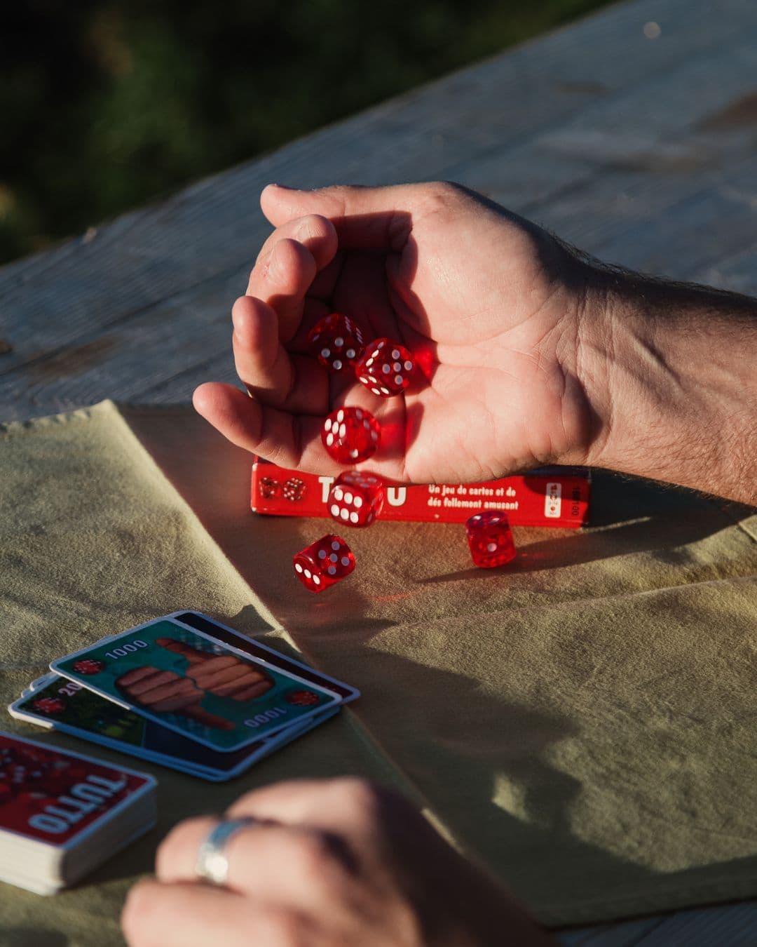 Wer hat zuerst 6000 Punkte? Dieses Spiel ist ein richtiges Zockerspiel. Die gezogenen Karten aber auch die 6 Würfel bestimmen über Sieg oder Niederlage. Vielmals braucht es aber auch einfach das nötige Glück und das Quäntchen Taktik, das einen zum Sieg bringt. Tutto ist ein Spiel für Klein und Groß und lässt sich sehr gut zu zweit, aber auch mit mehreren Spielern spielen.