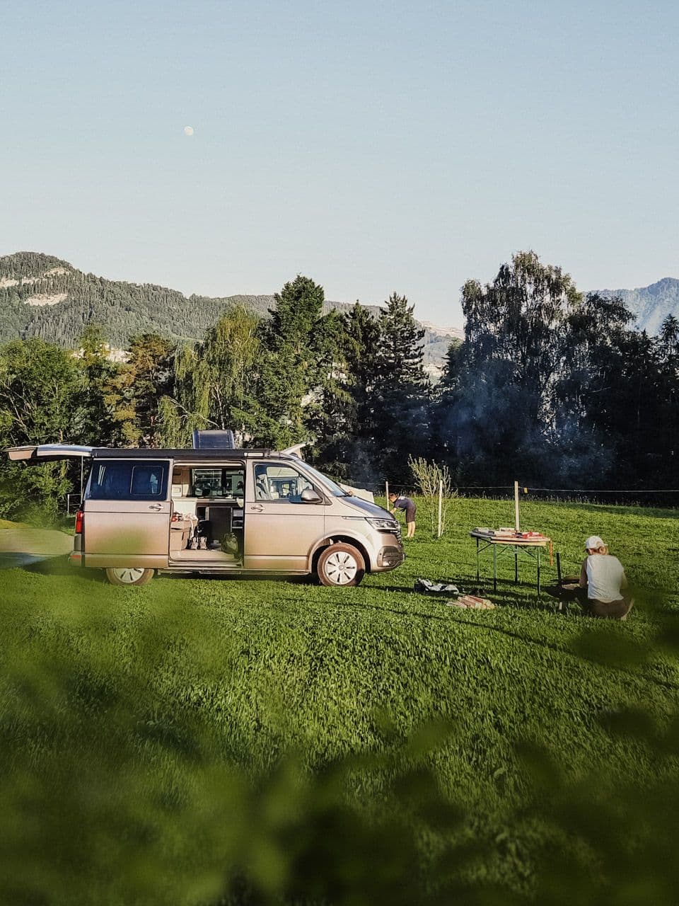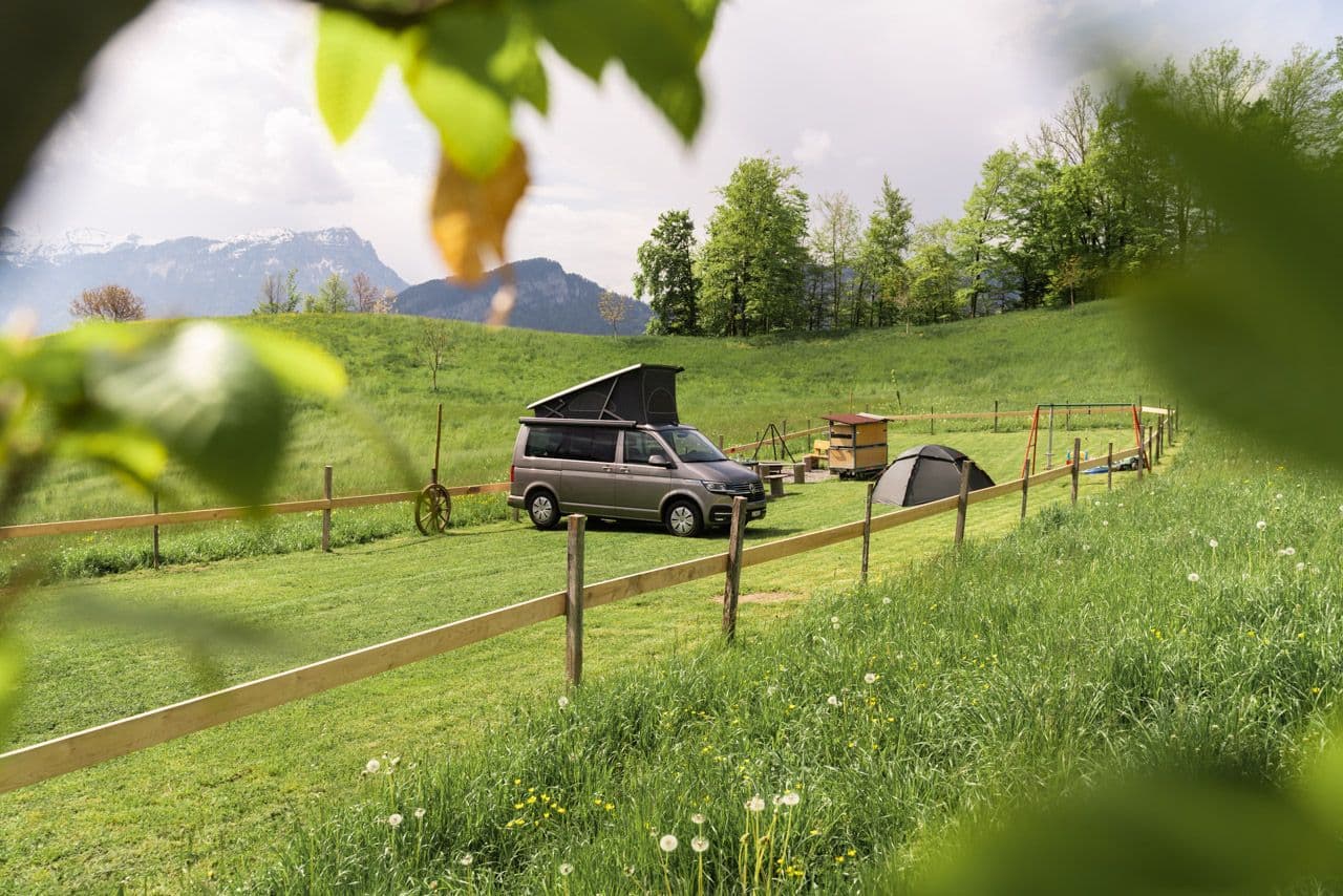 Endlich ist es soweit - unser Innerschweizer Roadtrip mit dem VW-Campingbus startet! Kaum sind wir losgefahren, erreichen wir schon unser erstes Ziel. Ausgehend von Luzern, ist "Chéschtenebaum", wie es in der Mundart genannt wird, in wenigen Minuten erreicht. Die Ortschaft verdankt ihren Namen einem stattlichen Kastanienbaum, der als Landmarke und Orientierungspunkt für die Bewohner gedient hat. Hier befindet sich auch das Camp "Biohof mit See- und Bergblick". Wenn man nach Feierabend startet, ist das der perfekte Beginn ohne Zeitdruck und Staus. Wir feiern diesen reibungslosen Start mit Schwimmen im See (schöne Badestelle nur 200 m vom Camp entfernt), gefolgt von einem gemütlichen Grillabend und erfreuen uns am Ausblick auf den Vierwaldstättersee.