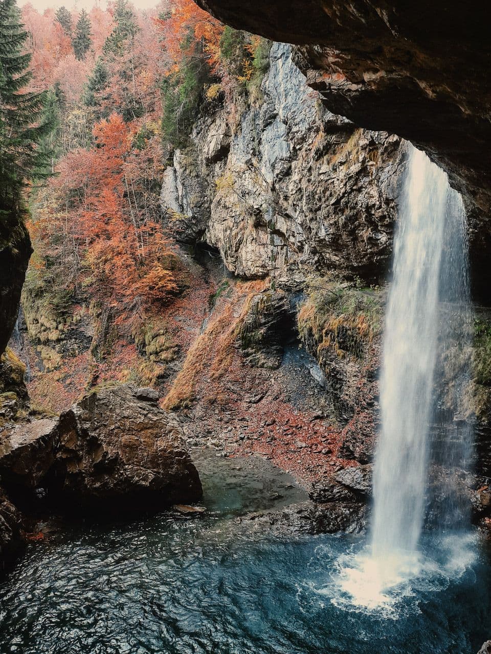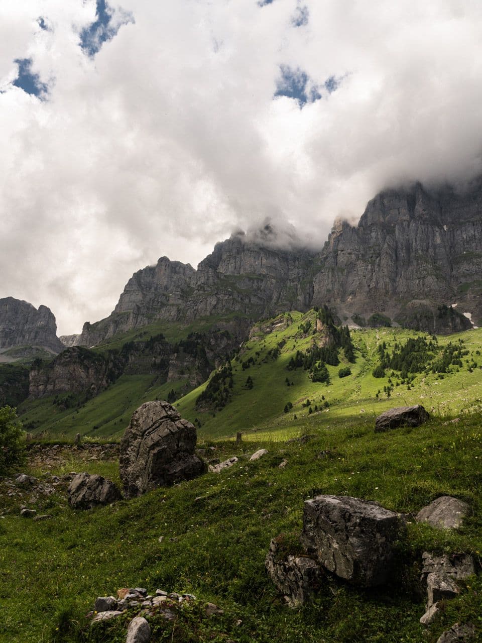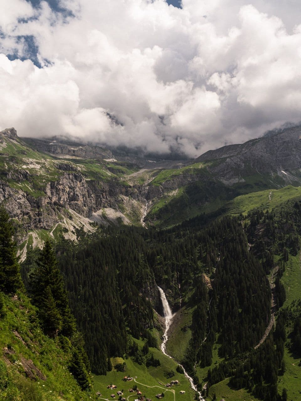 Vom Pass aus machen wir eine kurze Wanderung (ca. 45 min pro Weg) zum Gletscherseeli auf 2098 m. Am Seeufer kann man die abgebrochenen Eisbrocken schwimmen sehen, ein wahres Highlight. Zurück beim Bus ist unser nächster Halt der Urnerboden, ein idyllisches Hochtal, das uns sofort in seinen Bann zieht. Die saftigen Wiesen und das Glockengeläute auf der größten Schweizer Alp, laden zu einem Picknick ein. Nach einer Stärkung fahren wir weiter Richtung Linthal. Beim ehemaligen Restaurant «Bergli», direkt an der Passstraße, erhalten wir den Tipp zum Berglistüber Wasserfall zu wandern. In nur zehn Minuten sind wir dort: Ein absolutes Naturspektakel! Ein riesiger Wasservorhang schießt in die Tiefe. Auf eigene Gefahr kann man hinter den Wassermassen durchgehen.